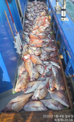 2026.01.04녹동제니스3호 참돔타이라바 조황 ....26년 첫참돔타이라바 14분조황입니다많은배들이 좋아하고 구간이 넓은포인트로 첫포인트를 잡아봤는데 엥?배가 한척도 없습니다 이물때에 이곳은 배들이 많아서 전쟁인데...다내꺼다 생각하고 차분히 배질해봤지만 첫번째 꽝 두번째2마리...세번째 라인바꿔 어군찾아보며 슬 돌아보는데 어군덩어리들이 찍혀서 태워보니 역시나 여지없습니다5짜후반부터 4짜 초.중.후반까지 한번흘림에 최소13개에서 20수까지 나와주네요하루종일 지루할틈없이 계속물어주었고,썰물에 씨알이잘아지고 의미없는 마릿수여서 칼퇴근합니다 같은포인트여도 같은곳에 있어도 라인이중요한 참돔타이라바는 한끗차이로 물어주고 안물어주고 하는데 오늘은 운좋게 그한끗이 제배랑 잘맞아떨어졌네요14분 총191수로 마무리 하였습니다 오늘도 고생많으셨고 찾아주셔서 감사합니다 *** 녹동 제니스3호 예약 안내 ***예약문의 : 010-8652-3919오시는길 : 전남 고흥군 도양읍 봉암리 3950 (녹동항)홈페이지 : http://zenith.sunsang24.com/