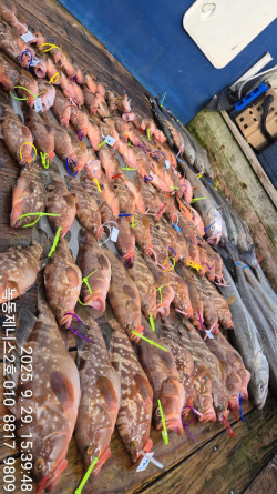 #붉바리외수질 #녹동제니스2호 #제니스2호 #한방데이250927/붉바리/제니스2호/한방데이오늘도 붉바리외수질 다녀왔습니다!오늘은 비예보에 강한바람까지 예보되어서아직 완전히 안정되지 않은 물색에바람까지 불면 포인트가 너무 한정적이기에과감히 그동안 묵혀뒀던 내만자리들을 돌아봤습니다!물때 기다리면서 기분좋게 사이즈에 체고까지 좋은 쩜농어로 스타트!기다리던 시간되어 살살 묵혀놨던 김장김치 꺼내듯묵혀놨던 포인트들 찍어봅니다!바로 ! 결과발표 !57.57.56.55.51...4짜10수이상쩜농어 7.6.5짜 다수!다들 기록갱신의 날 !오늘은 횟거리 못 챙기신 아픈손가락이 없습니다!월요일 여유자리 있습니다!황금연휴도 기상만 좋다면 쭉 붉바리로 달립니다~(중내만 기상악화시 내만 갑오징어)선상24 예약 및 예약문의 01088179809 *** 녹동 제니스2호 예약 안내 ***예약문의 : 010-8817-9809오시는길 : 전남 고흥군 도양읍 봉암리 3950 (녹동항)홈페이지 : http://zenith.sunsang24.com/