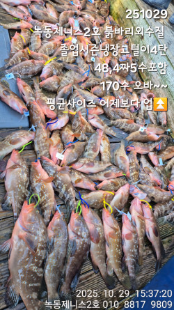 #붉바리외수질 #녹동제니스2호 #제니스2호 #아쉬운두방내일예약중~~ 여유조금251029/붉바리/제니스2호/아쉬운 두방! 오늘도 붉바리외수질 다녀왔습니다!오늘도 여윽시 냉장고 털이 직행!초보분들 대거 탑승에 낚시방법 알려드리고!살살 시작해봅니다!일정한 수온하강에 이제 적응해가는지굵직굵직한 붉바리들이 반응해줍니다!오늘은 적응해가는 붉바리 확인했으니마릿수에 한방까지 노려봅니다4짜들을 툭툭 뱉어내다 중간에 두방이 너무 아쉽네요하나는 올라오다 줄을 감아버리고하나는 살짝 설걸렸는지 바늘이 벗겨지네요ㅜ지대로인 놈들이였는데 아쉽습니다ㅜ그래도! 우~~수한 어제보다 더 큰 평균사이즈로 170수 오버!48포함 4짜5개 !황금물때 쭉 달려보겠습니다! 선상24 예약 및 예약문의 01088179809 *** 녹동 제니스2호 예약 안내 ***예약문의 : 010-8817-9809오시는길 : 전남 고흥군 도양읍 봉암리 3950 (녹동항)홈페이지 : http://zenith.sunsang24.com/