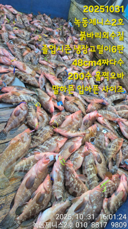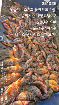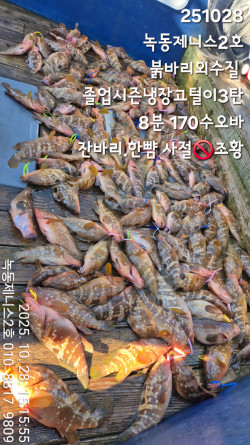 #붉바리외수질 #녹동제니스2호 #제니스2호 #그중에도251026/붉바리/제니스2호/그중에도오늘도 붉바리외수질 다녀왔습니다!오늘은 상당히 강한 바람이 예보되어있습니다그래도 가능한 기상 정도! 내려갑니다바람이 상당히 강하게 불고예보보다 조금 강한듯 합니다바람이 의지되는 자리가 아니면낚시가 힘든 수준이네요그래도 제니스는 제니스죠?바람에 의지되는 자리 그중에도!마릿수를 충족시켜줄수 있는 자리 그중에도!평균사이즈가 훌륭한 자리 그중에도!횟거리 한방도 챙길수 있는 자리들로!코스 잘 짜서 돌아봤네요오늘도 역시 말할 필요없는훌륭한 평균사이즈들만 200수 오버!5짜 하나에 4짜 4개!바람은 강했지만 처음 낚시하신 분들도양손 무겁게 챙기실만큼 편안하게!재밋는 낚시했습니다!월요일 기상악화 로 휴항하고 황금물때 출격준비하겠습니다화요일부터 쭉 마지막이될수도있는 황금물때!냉장고 대 대 대 방출하겠습니다!졸업식! 라스트댄스! 불태워보시죠!선상24 예약 및 예약문의 01088179809 *** 녹동 제니스2호 예약 안내 ***예약문의 : 010-8817-9809오시는길 : 전남 고흥군 도양읍 봉암리 3950 (녹동항)홈페이지 : http://zenith.sunsang24.com/