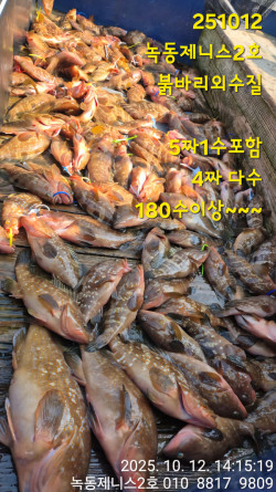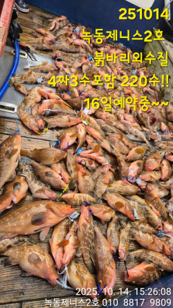 #붉바리외수질 #녹동제니스2호 #11분180수이상20251016/붉바리외수질/2호/11분180수이상11분모시고 외수질다녀왔습니다~^^오늘도 역시 안선장님 검증된 냉장고에서 하루종일 지루하지 않게 따박따박 잘나와주네요~~!!제니스 평균사이즈 말해모해요~^^5짜한방이 없는 아쉬움은 있었지만 4짜5수를 포함한 훌륭한 평균 사이즈를 보여줍니다.오늘 커플두팀 승선하셨는데 YB,OB 두팀것만 90수가 넘어갑니다. 굿굿굿!!!입문사장님만 10수로 리벤지를 기약하셨어요ㅎ오늘 짱사무장의 휴가로 간만에 지사모장이 승선했습니다~ 잔바리는 패스하고 타이쳤는데도 많이 힘드네요ㅡᆢㅡ 아무래도 몸살날거 같아요 ㅎㅎ오전에 수중전 예상됬었는데 다행히 기상이 예보보단 나아서 수중전은 아니었습니다.선선하게 가을 바람맞으며 즐거운 낚시로 정시 3시 칼철수로 마무리합니다~ 찾아주신 11분 조사님들 감사합니다♡(PS/수온만 맞아준다면 11월 중순까지 외수질이 가능하오니예약에 참고하세요~~^^)문의/ 010 8817 9809예약 https://zenith.sunsang24.com/ *** 녹동 제니스2호 예약 안내 ***예약문의 : 010-8817-9809오시는길 : 전남 고흥군 도양읍 봉암리 3950 (녹동항)홈페이지 : http://zenith.sunsang24.com/