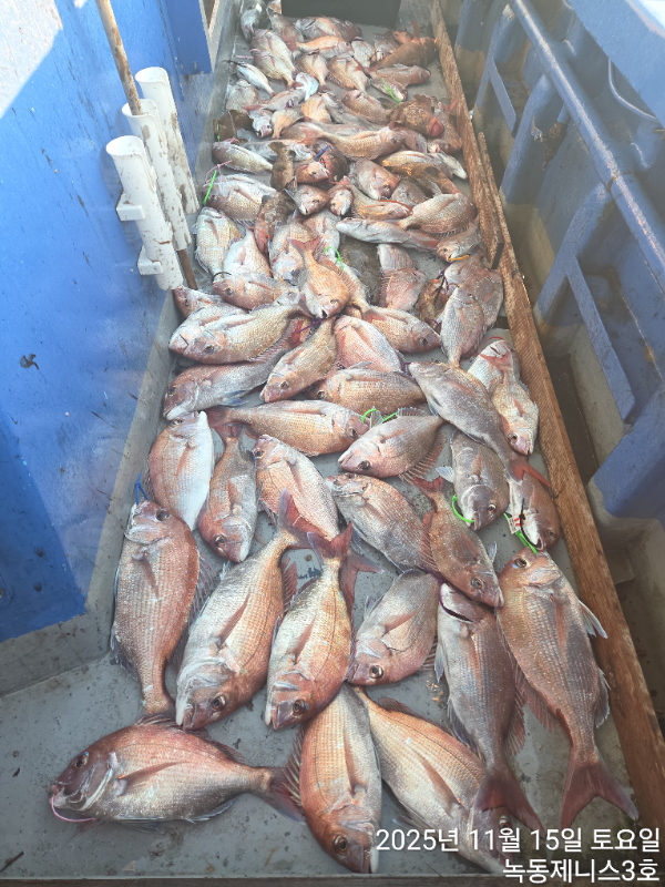| 제목 : 녹동제니스3호 15일 참돔타이라바 조황 100수오바 | ||