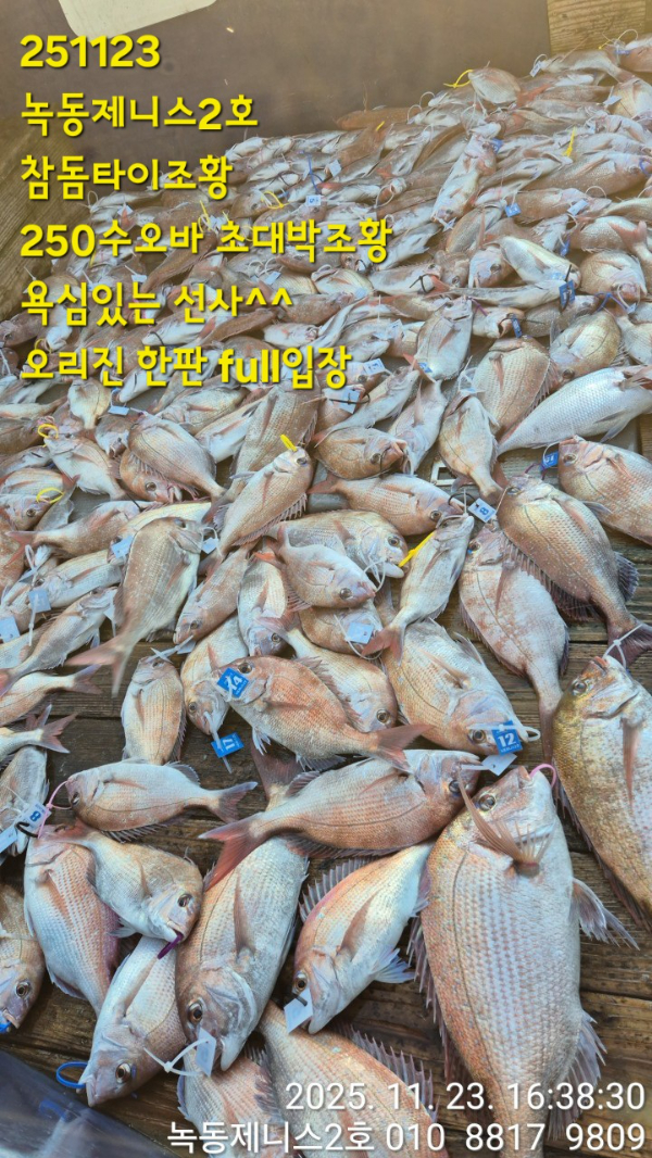 | 제목 : 251123 녹동제니스2호 참돔타이조황 250수오바 초대박조황 욕심있는 선사^^ 오리진 한판 full입장 | ||