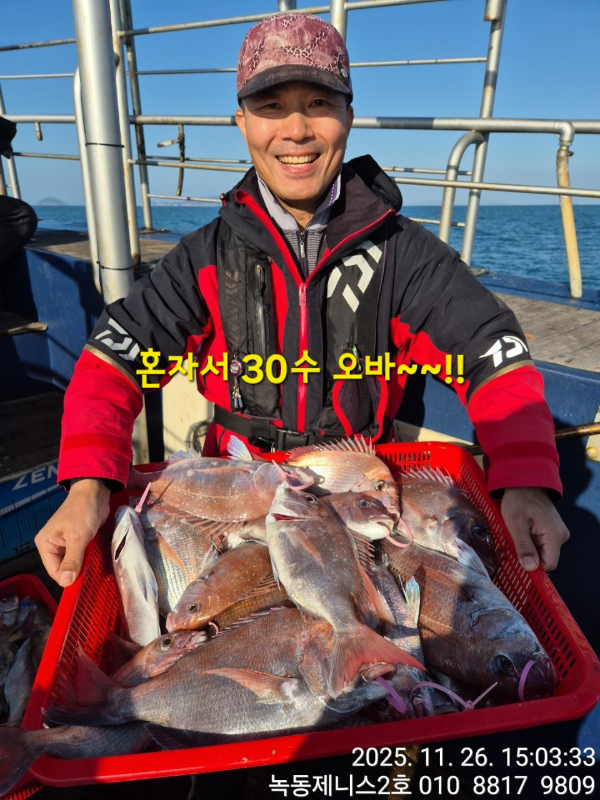 | 제목 : 251126 녹동제니스2호 참돔타이 8분 200수오바 긴말않고 미친조황~!! | ||
