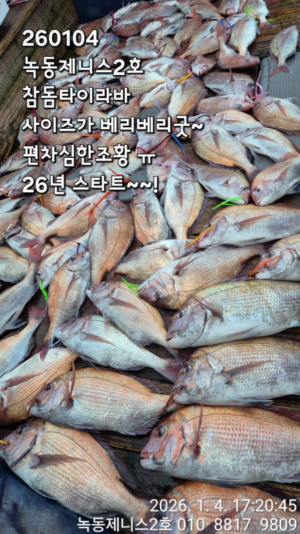 | 제목 : 260104 녹동제니스2호 참돔타이라바 사이즈가 베리베리굿~ 편차심한조황 ㅠ 26년 스타트~~! | ||