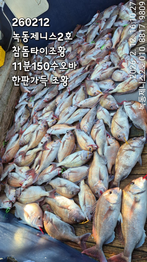 | 제목 : 260212 녹동제니스2호 참돔타이조황 11분150수오바 한판가득 조황 | ||