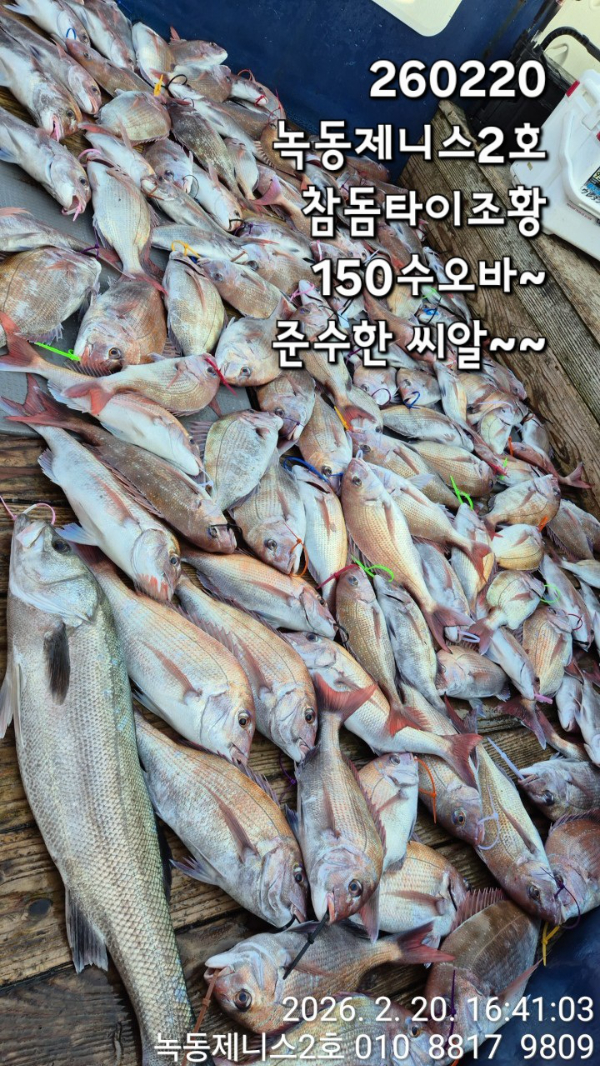 | 제목 : 260220 녹동제니스2호 참돔타이조황 150수오바~ 준수한 씨알~~ | ||