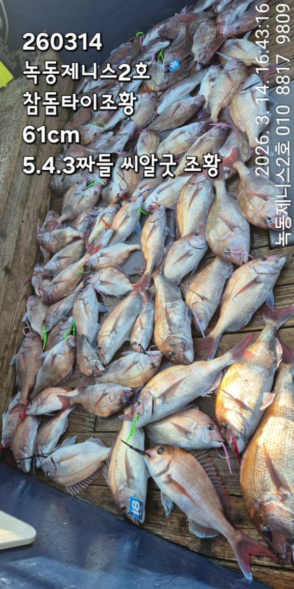 | 제목 : 260314 녹동제니스2호 참돔타이조황 61cm 5.4.3짜들 고른 씨알굿 조황 | ||